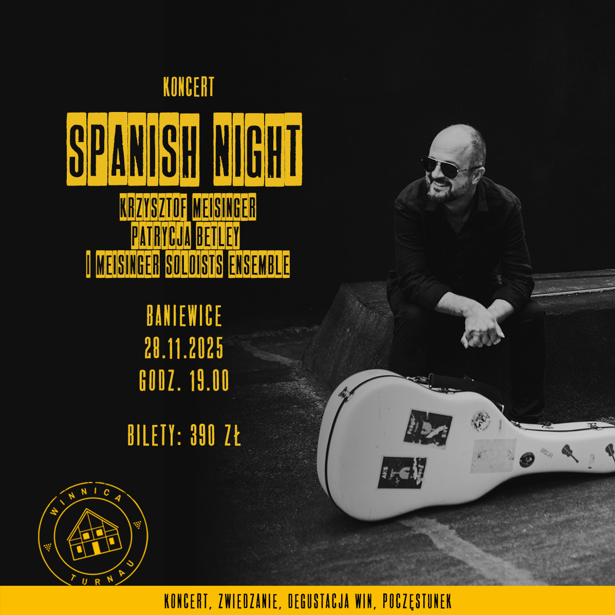 Przed koncertem tradycyjnie zapraszamy na powitalny kieliszek wina, a po koncercie na zwiedzanie winiarni, degustację naszych win, poczęstunek oraz spotkanie z artystami (wszystkie dodatkowe atrakcje w cenie biletu)